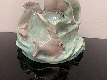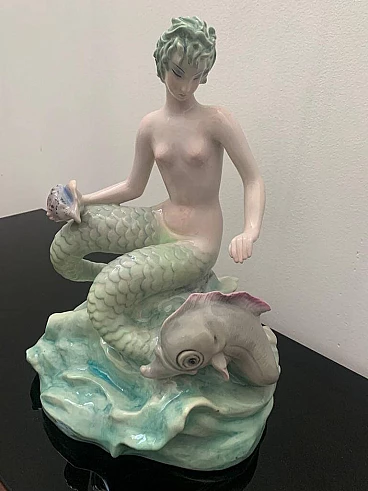 Ceramic sculpture depicting bicaudate mermaid by Le Bertetti, 1930s