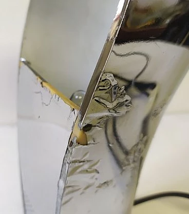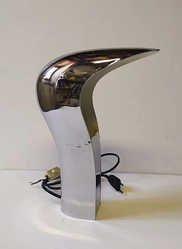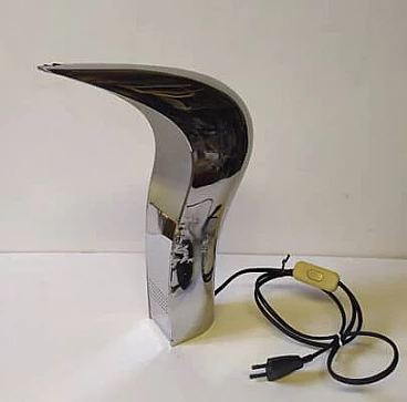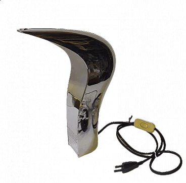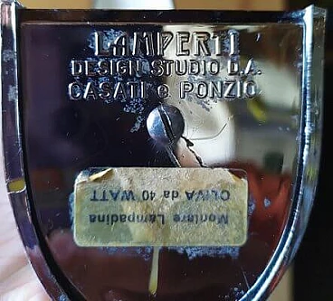 Imprinted mark under the lamp. This rare table lamp, in a chromed plastic version, was created by Lamperti of Robbiate, Italy, in the 1970s. Designer: Casati & Ponzio. The seller has confirmed that this piece is in working order. It shows heavy signs of use, the surface has been polished, the chrome area is missing, the top has defects.