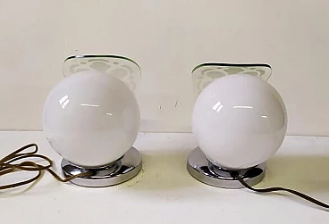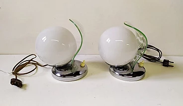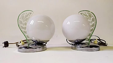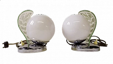Pair of Art Decò table lamps with etched glass, 1920s
