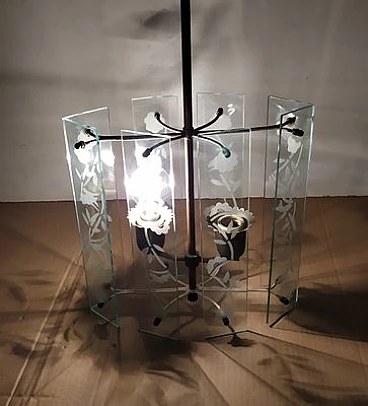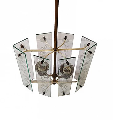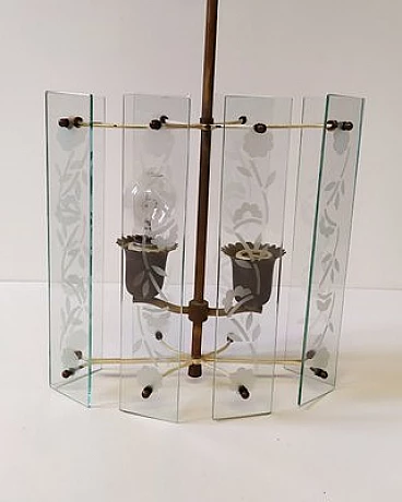Glass and brass hanging lamp for Fontana Arte, 1940s