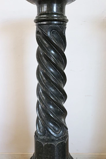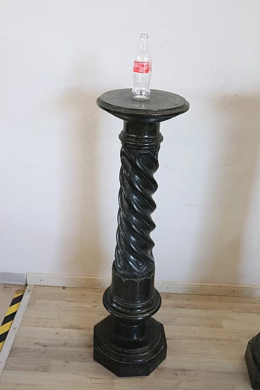 Late 19th-century antique column made of precious Italian marble of dark green hue. The body is carved in a twisting shape. Its size allows it to display large sculptures vases or busts. Small signs of wear on the support base, see detailed photos. However, we recommend that you take a good look in detail at all the attached photos. Proposed at an excellent negotiable price we invite you to send us your proposals for purchase we will evaluate them with pleasure.