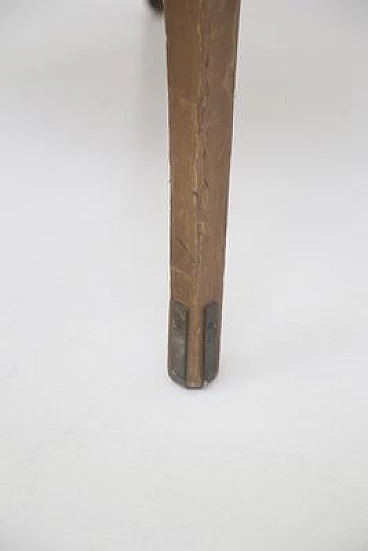 The structure is very simple and of hard shapes, made of simple wood, but durable and beautiful. There are 4 square legs, culminating in a brass strut.