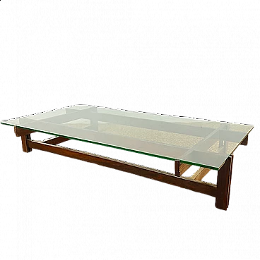 Spectacular low table in solid rationalist rosewood, designed by Ico Parisi in the early 1960s and produced by Cassina, features the trademark below. The object is in perfect condition with some small signs of time given by its 60 years of life, as shown in the photo. The glass is original, very heavy, not a single scratch on it. Dimensions 140x74x24cm.