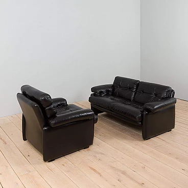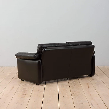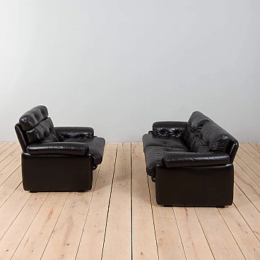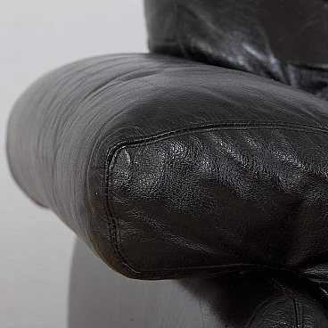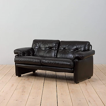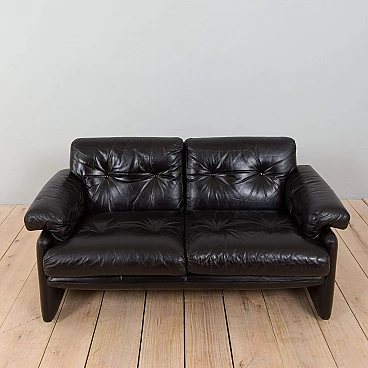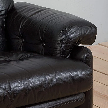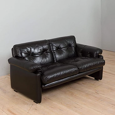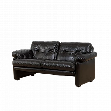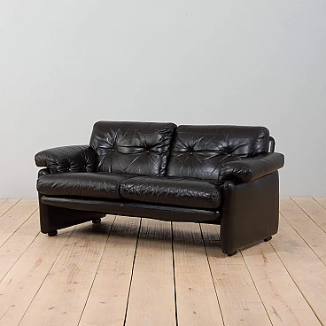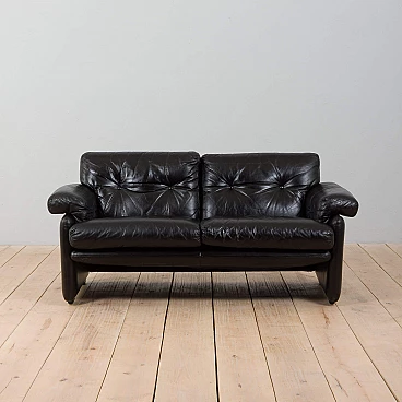The extremely comfortable Coronado two-seater sofa was designed by Afra and Tobia Scarpa (a couple also responsible for the iconic Soriana sofa and armchair) in the 1960s and produced by C&B Italia (the later B&B). Made of natural black leather, this sofa can enhance any mid-century modern or contemporary living room or lounge area.
