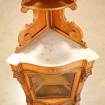 4 Louis Philippe maple corner cabinets with marble top and display case, mid-19th century