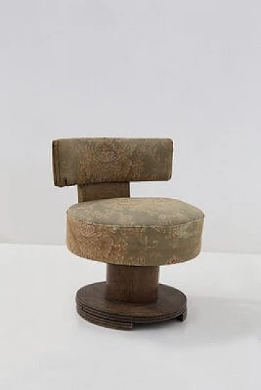 The seat is round and is made with a floral fabric cushion, original to the period. Very comfortable.