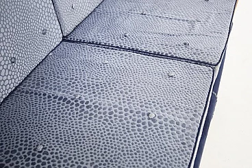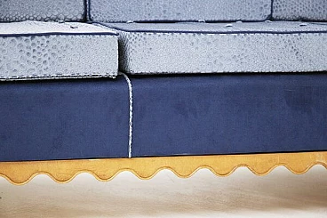 The sofa has 3 seat cushions and 3 back cushions, made of light blue serpentine spotted weave fabric, which is magnificent.