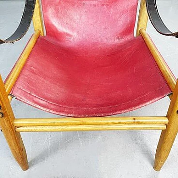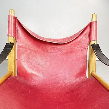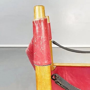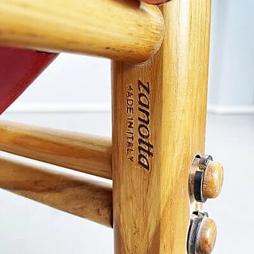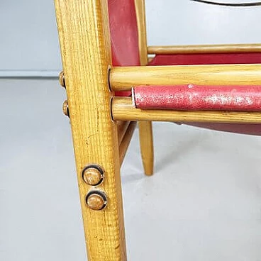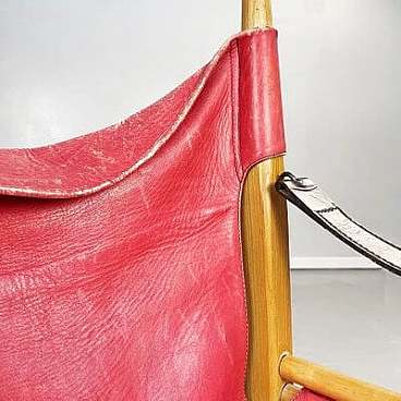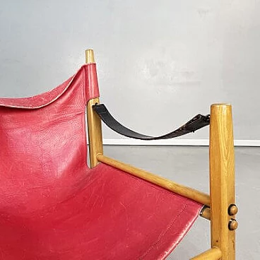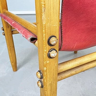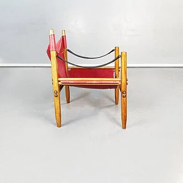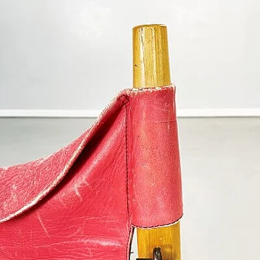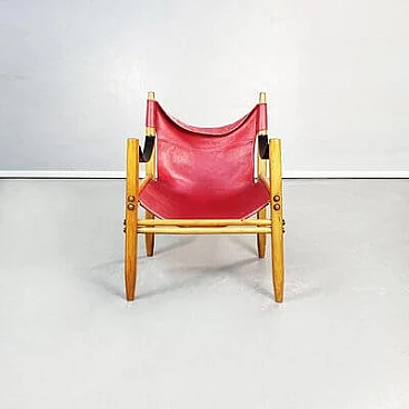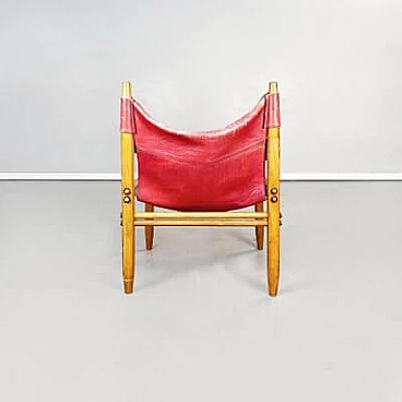 Italian mid-century Leather and wood armchair Oasi 85 by Legler for Zanotta, 1960s Armchair mod. Oasi 85 in red leather and wood. The seat and back are made of soft red leather, fixed to the structure. The armrests are made with leather straps and small metal connecting rods. The interlocking light wood structure. The chair has a very beachy feel, in fact the name derives from this aspect. It can be used ideally as a garden chair, on the beach or other outdoor locations. Produced by Zanotta in 1960s and designed by Gian Franco Legler. Brand present on one leg of the chair. Good conditions, the leather has several signs of use Measurements in cm 60x59x76h 30h seat 50h armrests.