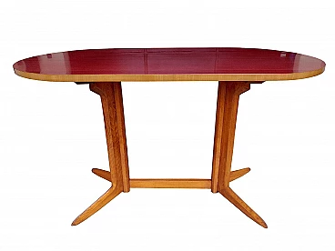 Wooden table with red top by Ico Parisi for Rizzi, 1950s