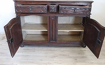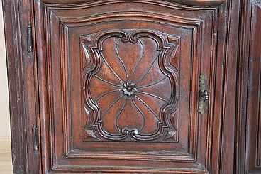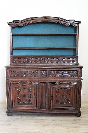 Louis XIV sideboard with plate rack in walnut with carvings, 17th century