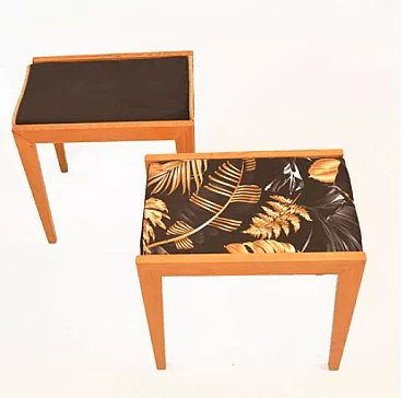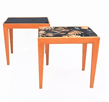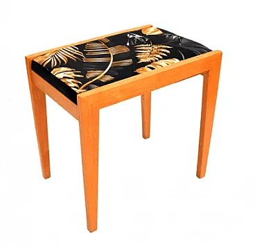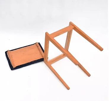 The stool was designed by Karel Musil and comes from Czechoslovakia from the 1960s. The zydel has been refurbished, the oak paneling is hand-covered with shellac paint. The padded part has a new padding, the whole is finished with a high quality fabric with an interesting decoration on the back. Interesting low seat with a minimalist shape. This piece of furniture is a classic of Czechoslovakian design, an excellent example of brusel style design. The saddles are in excellent condition, with no major damage. In the other auction we have another piece of furniture of this type.