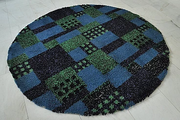 Round long pile rug with fantasy, 70's