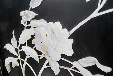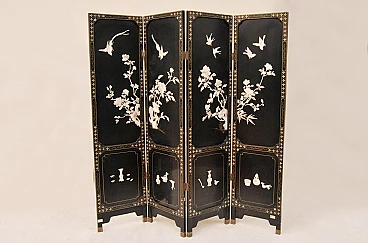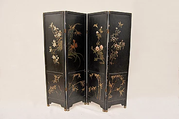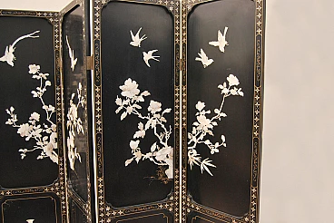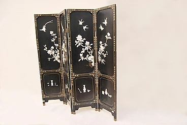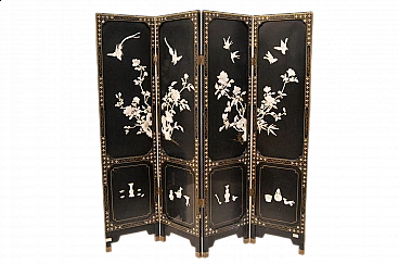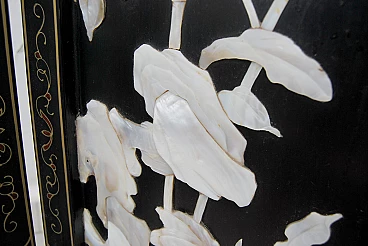 Lacquered wooden screen with painted and mother-of-pearl decorations, 1930s