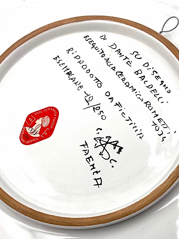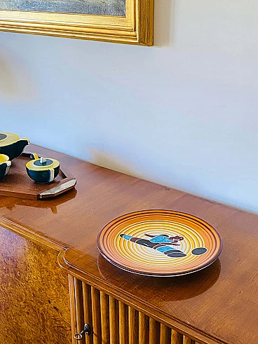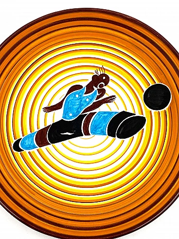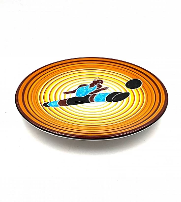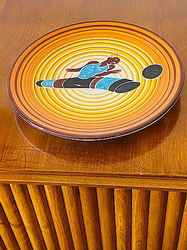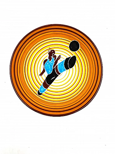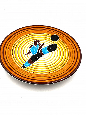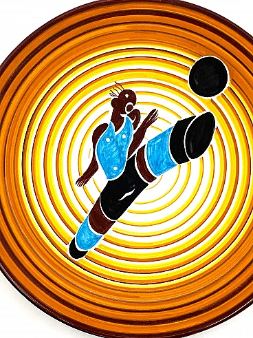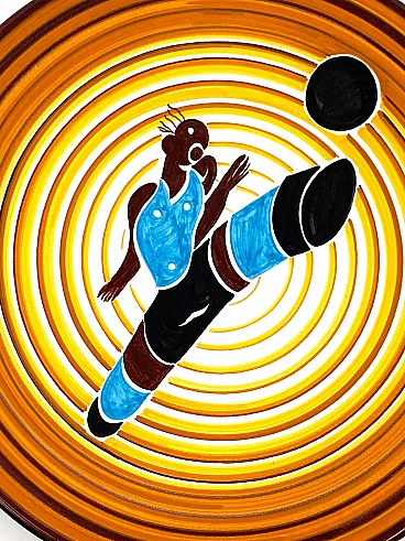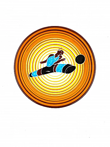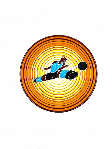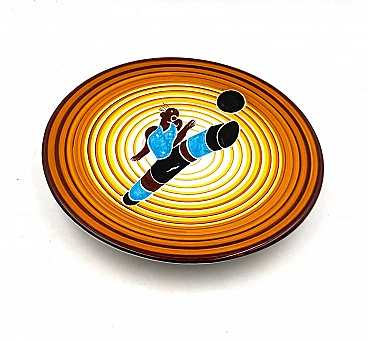 Futurist ceramic plate Calciatore by Dante Baldelli for Fictilia, 1971