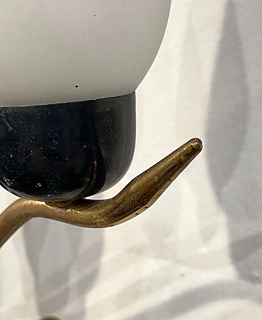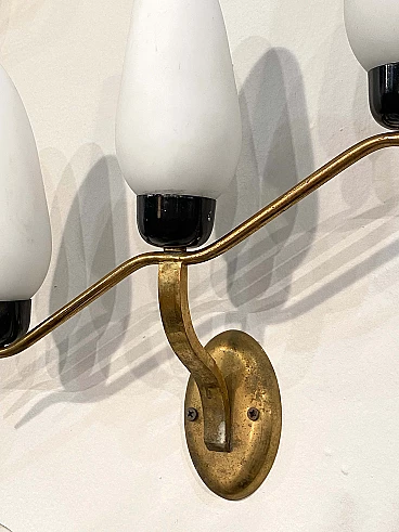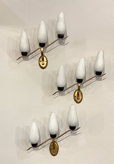 3 Wall lamps in gilded brass and opaline glass, 1960s