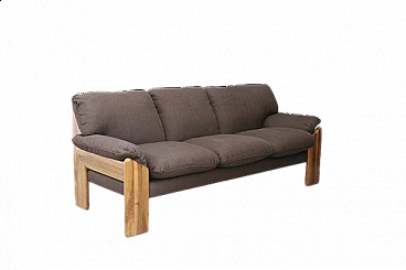 Three-seater sofa upholstered in brown fabric and noble wood frame by Saporro, 1970s.