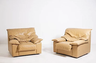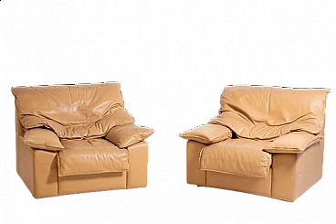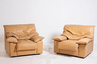 Pair of camel leather armchairs, 1970s