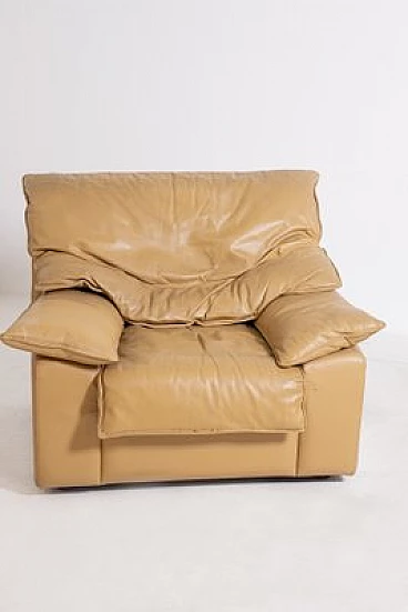 Pair of khaki camel leather armchairs, 1970s. Italian manufacture.