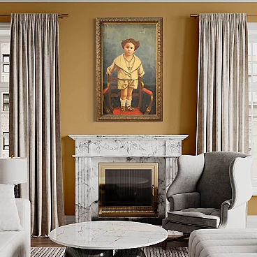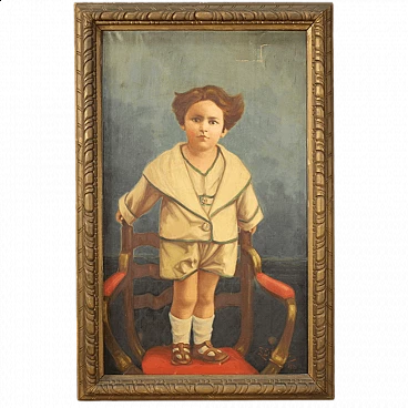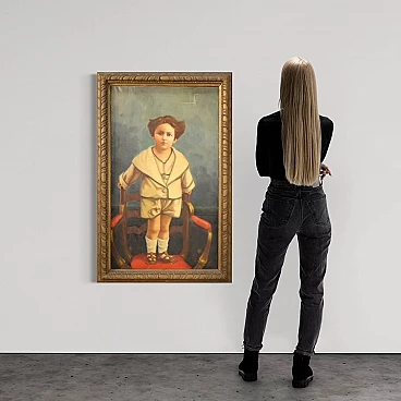 Portrait of a child standing on a chair, oil on canvas, 1921
