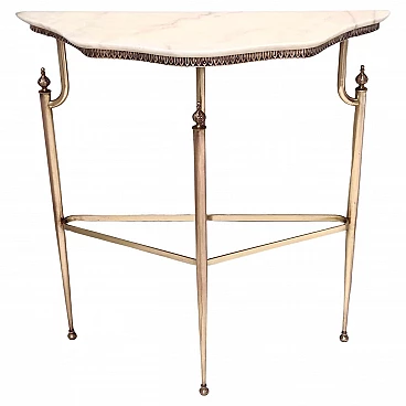 Console table with Portuguese pink marble top and brass frame, 1950s