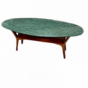 Walnut coffee table with green marble top, 1950s. Very good condition, slight wear consistent with age and use.