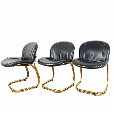 Three very rare limited edition Sabrina chairs by Giorgio Rinaldi (Gastone Rinaldi's brother) for Rima Padova Italy. The chairs are in excellent condition with small signs of wear and tear due to their 50 years of life. All branded RIMA Padova, unusual compared to the classic Sabrina, with brass chrome tubing and fixed black leather seat, not removable.