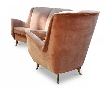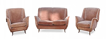 Sofa and pair of armchairs in velvet by ISA Bergamo, 1950s