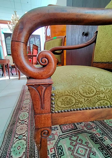 Pair of Neoclassical walnut chairs with padded seat and back, 19th century
