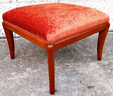 Wood and velvet stool in the style of Paolo Buffa, 1960s