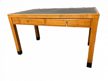Solid beech desk with black lacquered top and leg ends. It features a double drawer. 1940s. Perfect condition, newly restored. Length cm 140, width cm 80, depth cm 80.