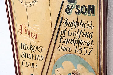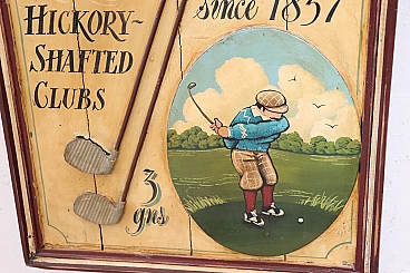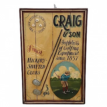 This collectors' sign is very special. Made of wood with relief decoration and hand-painted. The advertising sign was dedicated to golf clothing and equipment. Very good condition. We recommend you take a close look at all the attached photos. Offered at an excellent negotiable price, we invite you to send us your suggestions for purchase and we will gladly evaluate them.