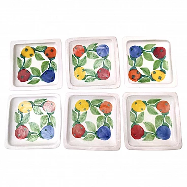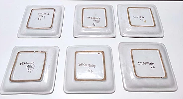 6 Handmade terracotta square plates by De Simone, 1964