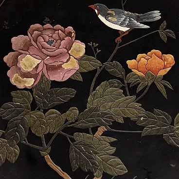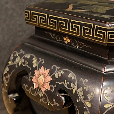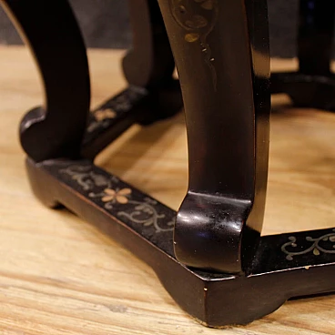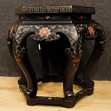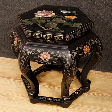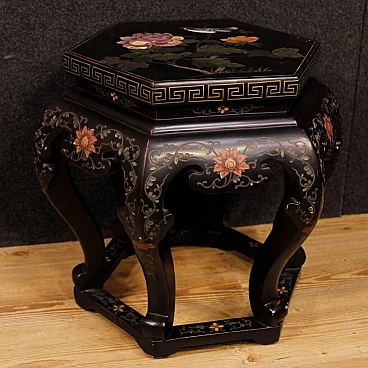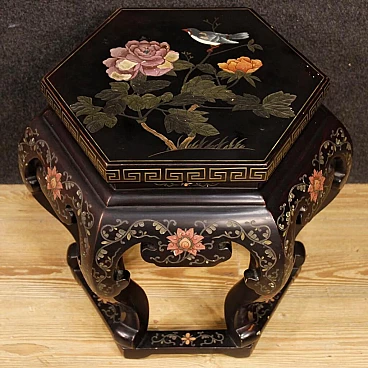 Hexagonal lacquered wooden table and painted in Chineseria, 1960s