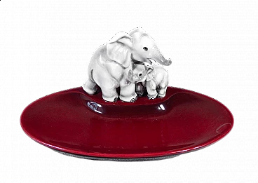 Painted and glazed ceramic ashtray with elephantess and cub by Guido Cacciapuoti, 1930s