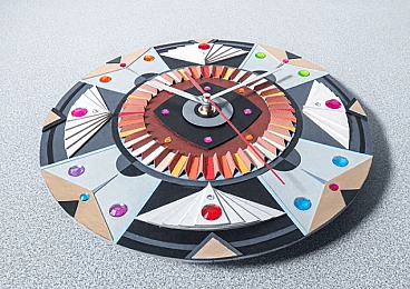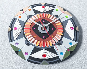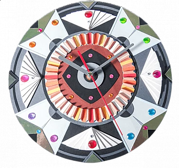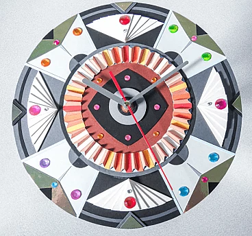 Wall clock in plastic and cardboard by Delcio, made in the 20th century. One-of-a-kind handcrafted piece. Functioning.