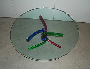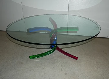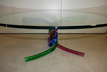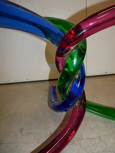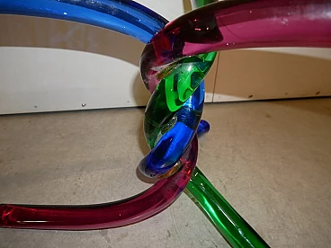 Murano glass coffee table with three intertwined tubular feet, 1980s