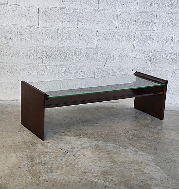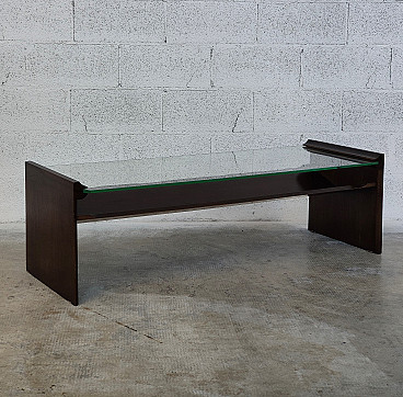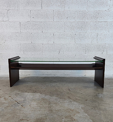Acca coffee table with magazine rack designed by Japanese architect Kazuhide Takahama and produced by Gavina-Italy in the 1960s. Wooden frame and glass top with corners cut at 45°.