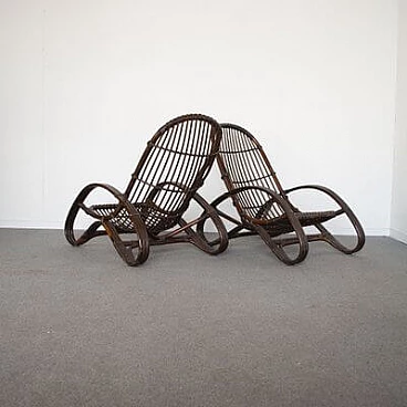 Pair of wicker armchairs, 1960s