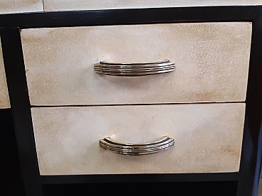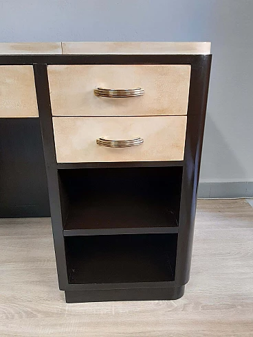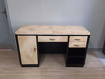 Art Deco black lacquered wood and parchment writing desk, 1940s
