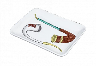 Ashtray saucer in painted porcelain produced by Fornasetti, a Milan company. Excellent condition, no cracking or chipping.