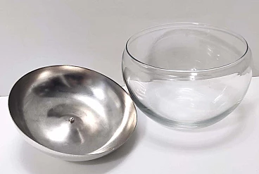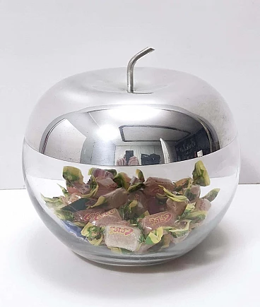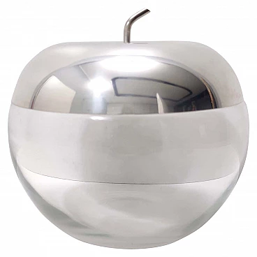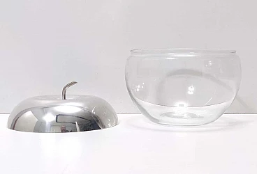 Apple-shaped ice bucket in silver-plated metal and glass, 1970s