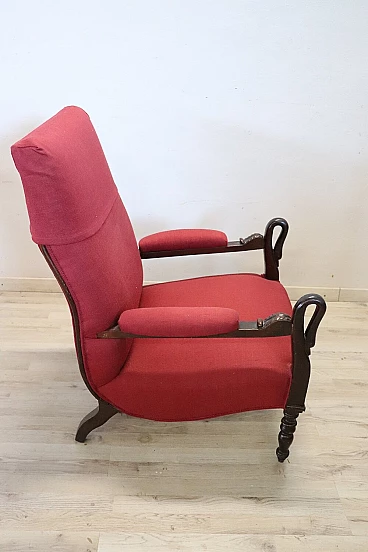 Louis Philippe armchair in walnut with carvings, first half of the 19th century