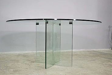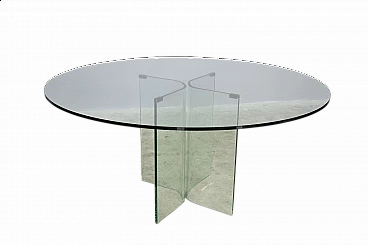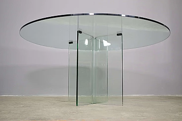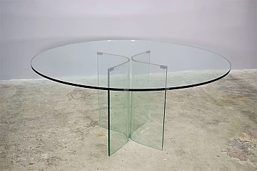 Round table in toughened glass, 1980s