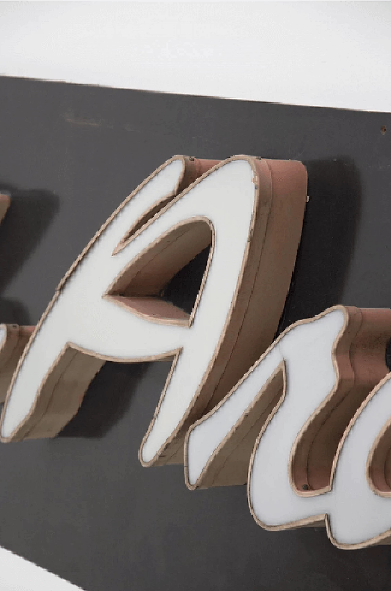 Elizabeth Arden sign in aluminum, wood and plexiglass, 1950s