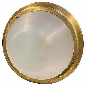 Brass and plexiglass round ceiling lamp, 1970s