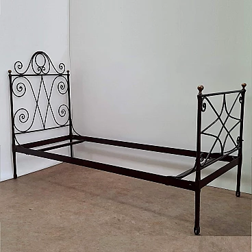 Wrought iron single bed, early 20th century