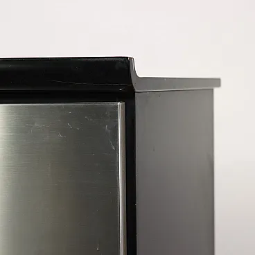 Black lacquered wood and chromed aluminum sideboard, 1970s. Equipped with drawers and hinged doors.