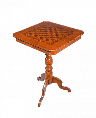 Walnut game table with chessboard inlaid in various woods, 19th century.