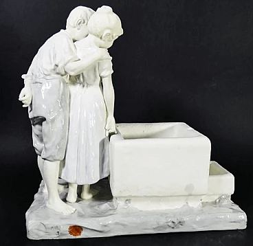 Franz Sautner, Children at the fountain, ceramic sculpture, 1920s