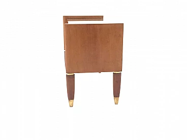 Walnut bedside table with glass top and brass details, 1940s